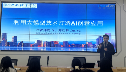 为了帮助同学们学习和了解AI时代大模型以及AI在新时代的应用,软件学院于10月23日下午2:30在学校天心校区北院综合教学楼211教室举行了“利用大模型技术打造AI创意应用”专题讲座。本次讲座特邀请了澎峰(北京)科技有限公司湖南分公司研发解决方案负责人邱凤林担任本次主讲嘉宾。软件学院全体老师及相关专业学生参加了本次讲座。