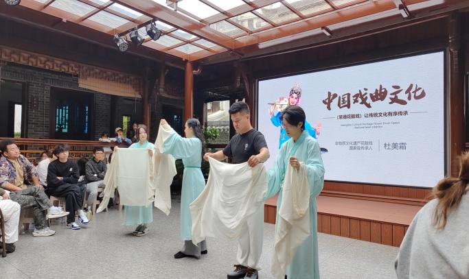 舞台展演组学生赴常德市大小河街非遗传承保护基地,基地邀请了国家级非遗传承人杜美霜、涂军等名师走入课堂,带领学生深入学习常德丝弦、汉剧高腔、常德花鼓戏等传统音乐,通过实地参访、名家讲座、剧目学习等环节为学生们带来了深入的传统文化沁润。与此同时,同学们还精心策划了多场演出,得到常德市民的高度评价,也充分展示了星空app登录入口人文与音乐学院学子的专业素养和艺术风采。