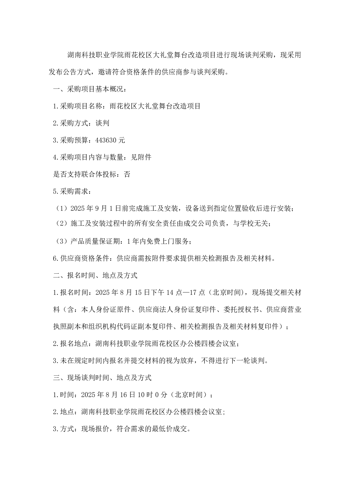 星空app登录入口雨花校区大礼堂舞台改造项目采购邀请公告